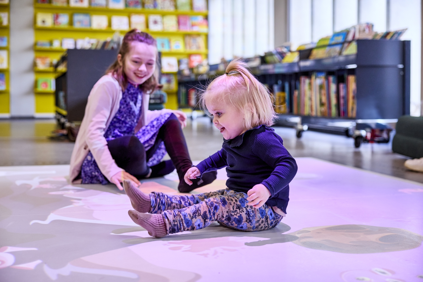Bibliotekspersonalet viser rundt, og laver en aktivitet eller læser en historie op - alt efter hvilket tilbud du har booket.